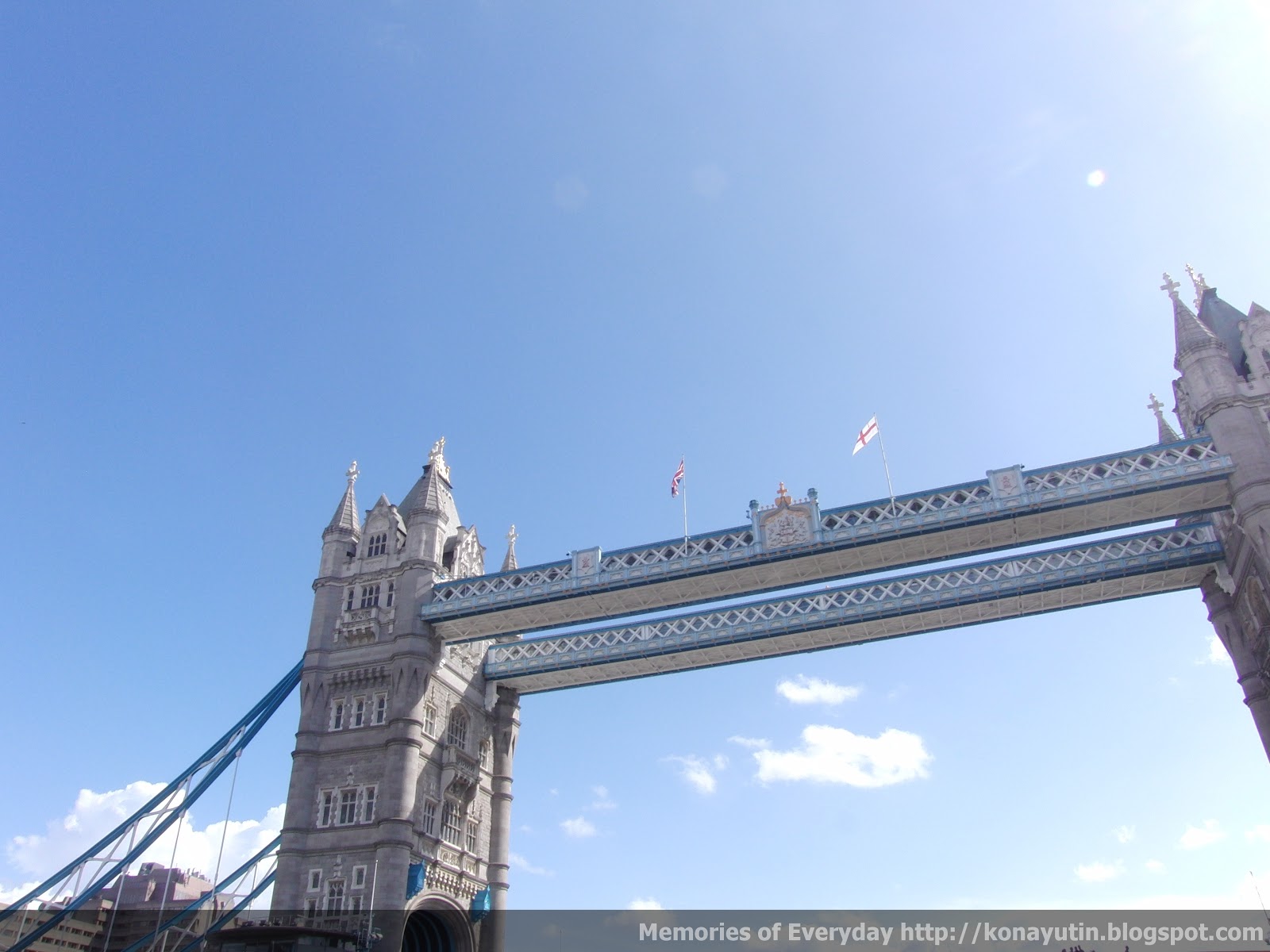 所以最後的橋樑是一條開合橋,使水路進出倫敦的船隻不會受到影響。以往倫敦港口的水路交通非常繁忙,大橋經常也處於升起狀態,因此設計上才有上方的行人路,即使大橋長期不能通車,人們還是可以步行經過。到了現在,自從倫敦港口業式微,大橋日日升起的日子也以一去不復返,在下午時段坐着旅遊船看到的機會更是少之又少,據隨船的解說員所講,這也是每天在河上工作的他看到的第六次,因此一次(還應該是唯一一次)就看到的我真的十分幸運。雖然,到我通過的時間,橋板已在徐徐的降下。
